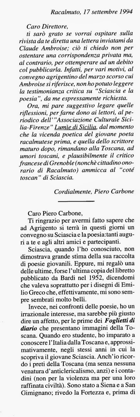 Nella ricorrenza del 25° anniversario ripropongo la testimonianza critica di Claude Ambroise appositamente richiesta e pubblicata nel 1994 sulla rivista fiorentina "Lumìe di Sicilia".